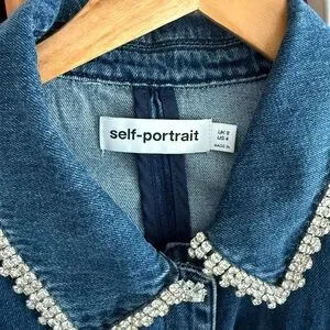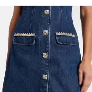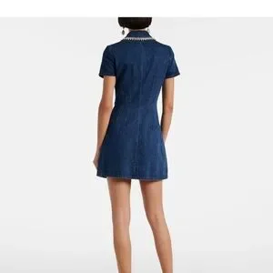 Self-Portrait Navy Denim Dress with Pearl Trim