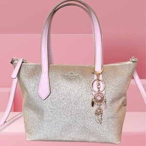 Kate Spade Pink & Rose Gold Glitter Tote Bag with Charm