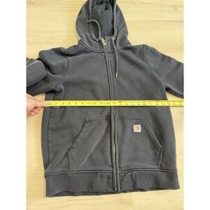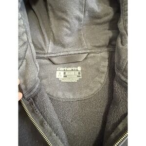 Women's size medium full zip black Carhartt jacket; there are no issues with this (including zipper works great); some light wear and tear, but overall a great name brand zip up hoodie!