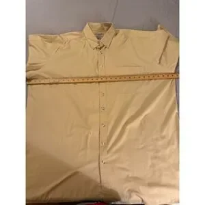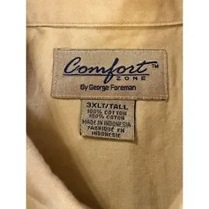 The Big & Tall George Foreman Comfort Zone 3XL Khaki Beige Short Sleeve shirt is a versatile and comfortable choice for men. Made of cotton, this relaxed fit button-up shirt features a collared neckline and button closure, perfect for casual, business, or party occasions. The classic beige color and 31-inch chest size make it a stylish and inclusive option for big and tall individuals. Perfect for travel or everyday wear, this shirt offers both style and comfort with the George Foreman brand name.