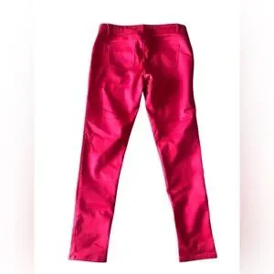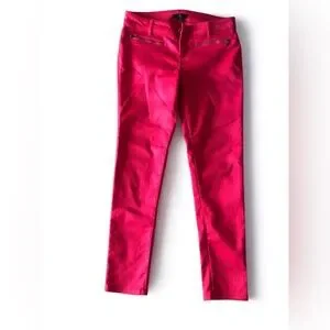 Sleek slim silhouette in vivid hot pink. Front zip pocket accents and a metal button closure. Clean, modern styling for bold outfits.
