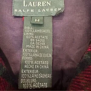 Ralph Lauren Women’s Red and Navy 100% Lambswool Zippered Shirt