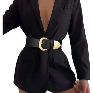 Fashion Belt Gold Buckle: This wide stretchy belts for women features a stylish gold buckle, adding a touch of sophistication to any outfit.