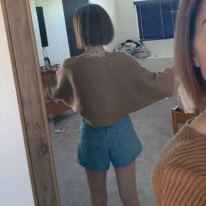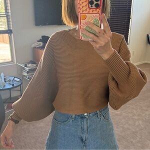 Like New! Altar’d State Ribbed Cropped Sweater with Balloon Sleeves Camel Brown