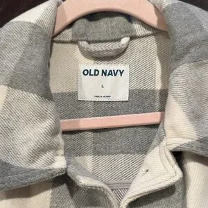 Old Navy Gray and White Plaid Button Down Shirt