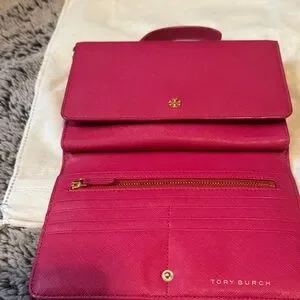 Tory Burch Pink (Fuchsia) Top-Handle Satchel/Crossbody bag with Gold Logo