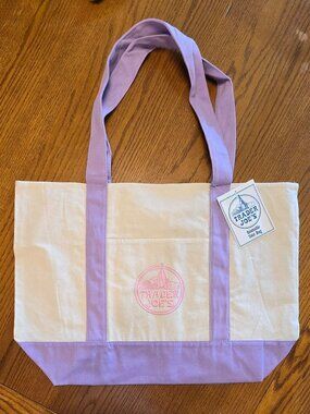 NWT - The Trader Joe's Canvas Limited Release Tote Shopping Bag in Lavender is a large, solid-color bag made from durable canvas material. It features side pockets, a foldable design, and care instructions for easy maintenance. This reusable tote bag is ideal for everyday shopping trips, gifts, farmers markets, the beach, or even a picnic. With a traditional style, this original Trader Joe's tote is not only practical but also stylish for carrying your groceries or other items. The Trader Joe's brand ensures quality and reliability in this practical and eco-friendly reusable tote bag.