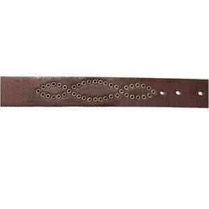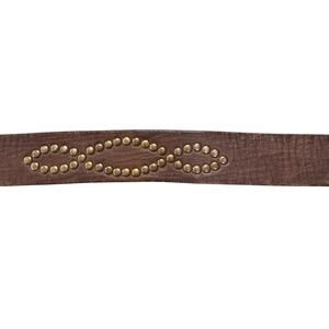 Vintage-inspired brown leather belt with gold-tone stud detailing in a classic boho / Y2K style. The repeating oval stud pattern gives it a subtle western feel, while the distressed leather adds character.