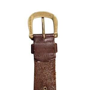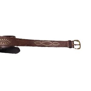 Vintage Y2K Brown Leather Studded Belt Gold Hardware Boho Medium