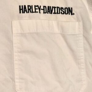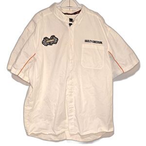 Authentic men’s button down garage/work shirt from Harley-Davidson Genuine MotorClothes 2014 collection. Built for riding and shop wear with a retro-garage aesthetic.