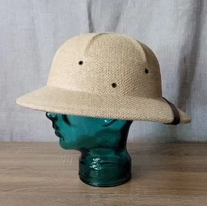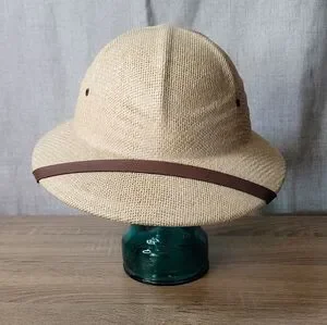Classic tan straw safari pith hat for everyday sun protection. Lightweight, breathable weave keeps you cool. Timeless neutral color pairs easily with outdoor and casual looks. Simple, versatile design for reliable sun coverage.