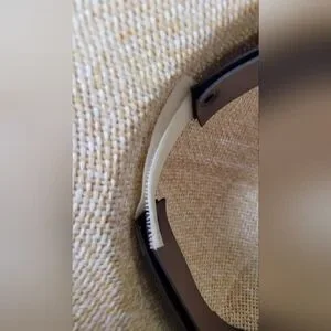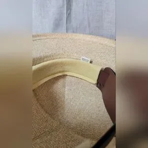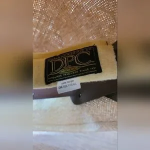 Dorfman Pacific safari hat. 100% paper. Adjustable. One size fits most. There's some light staining on the inside cloth pad. It can be removed and/or washed. I l'm not 100% sure if the stains can be removed.
