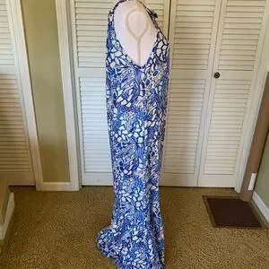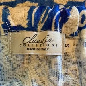 Claudia Collezioni Blue & White Floral Linen Blend Maxi Dress Size S