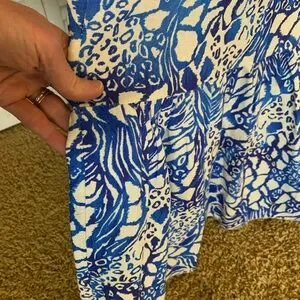 This is a beautiful dress. I bought it new, took the tags off, tried it on and then decided not to keep it. I just wanted a little more coverage around the underarm side area where it kind of scoops down.