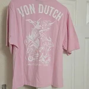 Von Dutch Pink Tee with White Logo Nwt
