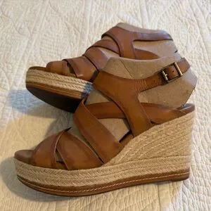 Clarks Indigo Amelia Drift Brown Wedge Jute Size 10 Sandals Espadrilles Boho