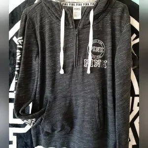 guc. quarter zip and kangaroo pockets. marl gray in color. 21 1/2" pit to pit. bling down both arms.