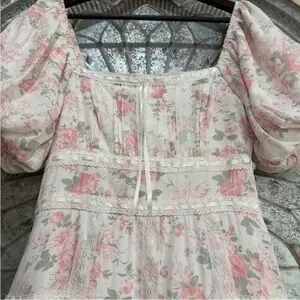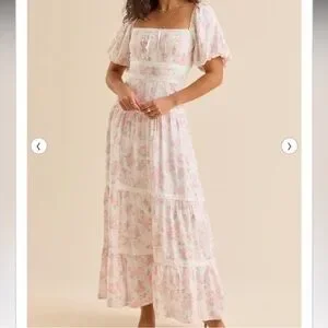 NWT- Altar'd State Blush Pink Floral Square-Neck Tiered Spring Easter Maxi Dress