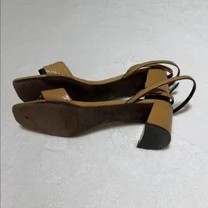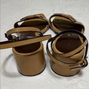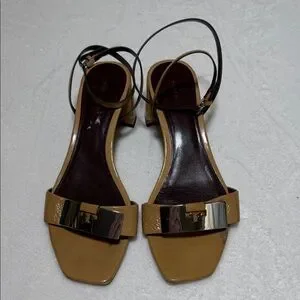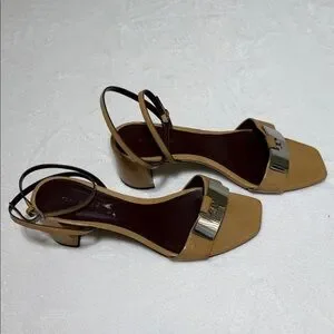 Tory Burch Gigi Tan Leather Ankle-Strap Sandals with Silver Logo Plate