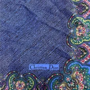 Dior Blue and Black Patterned Silk Scarf with Floral Accents
