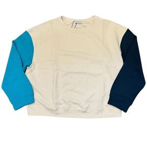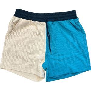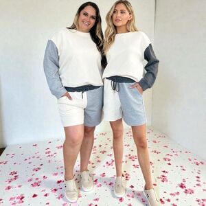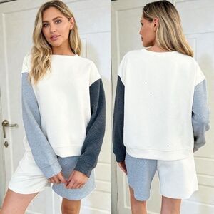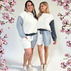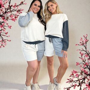 Blue Contrast Color Block Drop Shoulder Long Sleeve Top & Shorts Lounge Set NWT