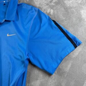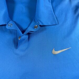 Nike Tiger Woods Collection Golf Polo Blue Dri-Fit Snap Button Mens Small 619760