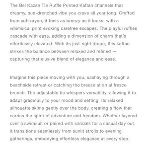 Anthropologie Bel Kazan Tie Ruffle Floral Printed Kaftan