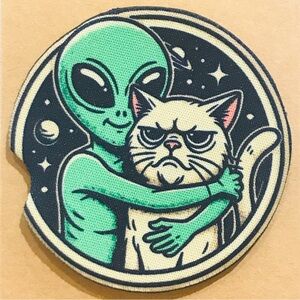 Alien Hugging Grumpy Cat Neoprene Car Coasters Set Handmade