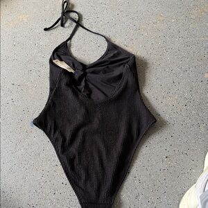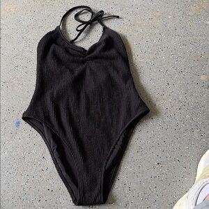aerie Black Ribbed Halter One-Piece Swimsuit