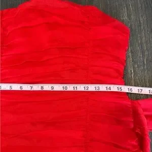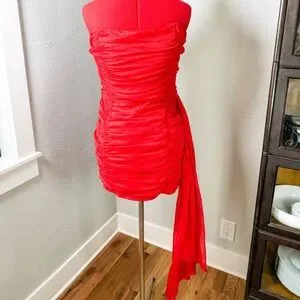 Strapless ruched mini dress by Lulu's. Vibrant red fabric with fitted silhouette. Draped side panel adds movement. Sleek and eye-catching for events. Unfortunately didn't fit me ..