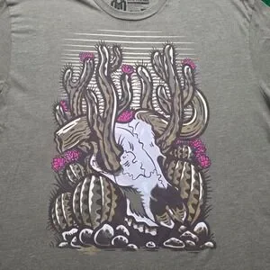 Into The AM Shirt Mens XL Military Green Desert Cow Skull Cactus Graphic Tee