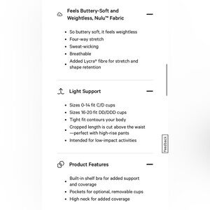 This is size 8, worn once to yoga and then decided to go back and buy next size up because it was tight on the bust. Pads were removed prior to wearing that one time so those have never been worn. (Pads are included).