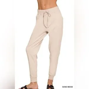 ZENANA NWT Joggers Cotton Pants Sand Beige Size Small - X-Large