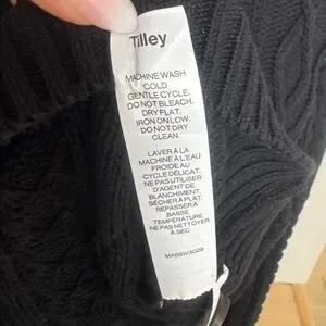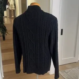 Tilley Black Cable Knit Button Mock Neck Sweater S