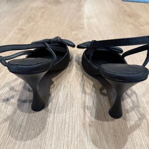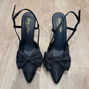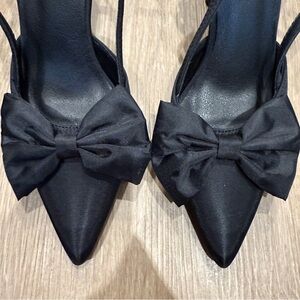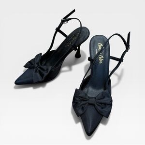 Chase + Chloe Black Pointed Slingback Heels with Bow