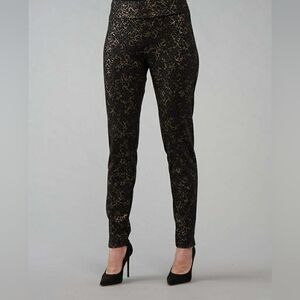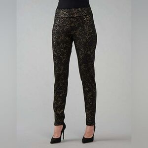 Carmen Marc Valvo Black Gold Crinkle Pull On Pant Slim Size 10 Dress Pants