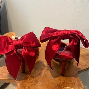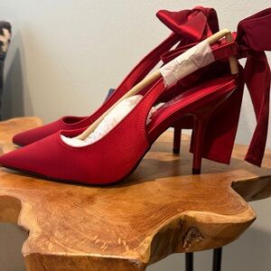 Elegant red pointed-toe heels with a satin bow accent. Great for pop of color or evening wear. Smooth red finish adds a polished, feminine touch. NWT!