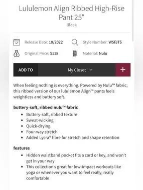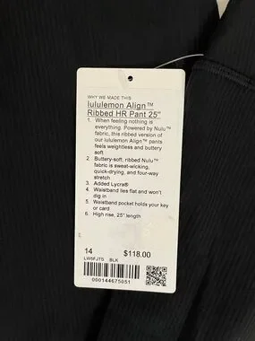 Lululemon NWT Align Ribbed High-Rise pants in Black 25” Leggings size 14