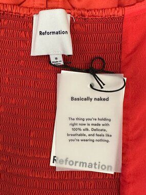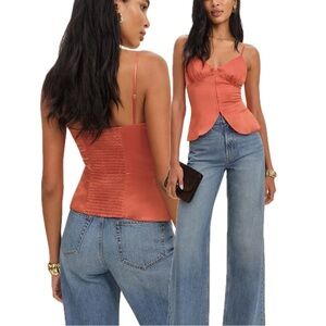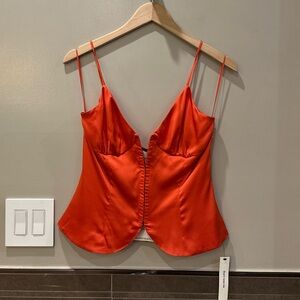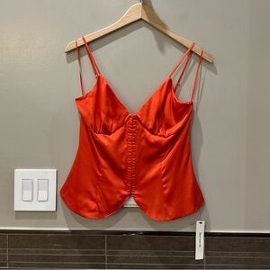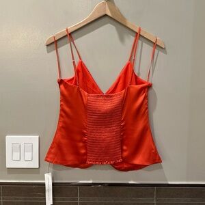 Reformation Lumi Silk Charmeuse V-Neck Sleeveless Camisole Top (Red Coral)