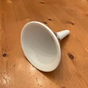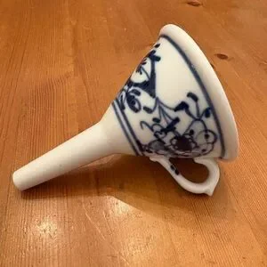 Elegant blue and white ceramic funnel with classic hand-painted floral motif. Lightweight porcelain design adds a refined touch to your home. Perfect as a decorative accent or tabletop display. Includes blue detailing for a timeless look.