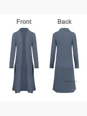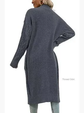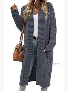 Long Cable Knit Cardigan Sweater with Pockets Open Front Loose Fit
