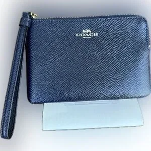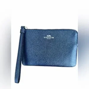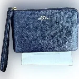 Coach Midnight Blue Corner Zip Crossgrain Leather Wristlet NWOT