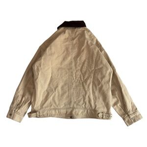 Lioness Beige Canvas Bomber Jacket with Dark Brown Corduroy Collar