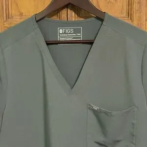 FIGS Technical Collection Catarina Scrub Top. Spruce Green, Women's size XXL, 1 Chest Pocket, V-Neck, Short Sleeve, Back Darts, Side Vents. Style : FW1000