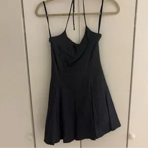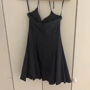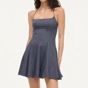 Never worn. Super flattering dress. Not very roomy so I would recommend for a size 2-4. Pretty chambray color.