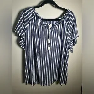 Croft & Barrow Navy White Striped Top 1X