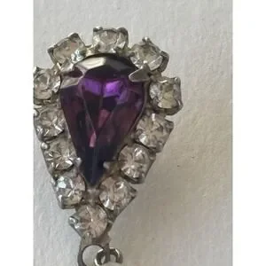 Earrings Purple Rhinestones Pearl Gold Tone Jewelry Valentines About 1"