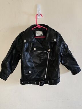 Kids Faux Leather Moto Jacket Black Biker Unisex Size 110 Edgy Style NWT