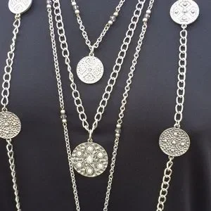 Premier Designs Necklace in layered design, 9 medallions in a silver look