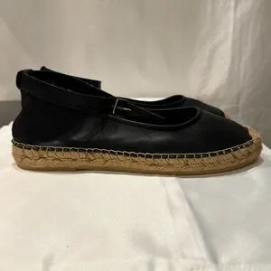 Free People Mason Espadrille Ballet Flats Black Leather Ankle Strap Size US 8.5